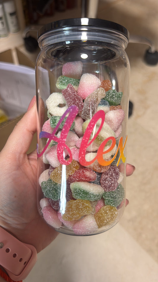 Vaso de metacrilato con chuches personalizado con pajita