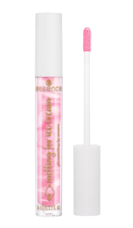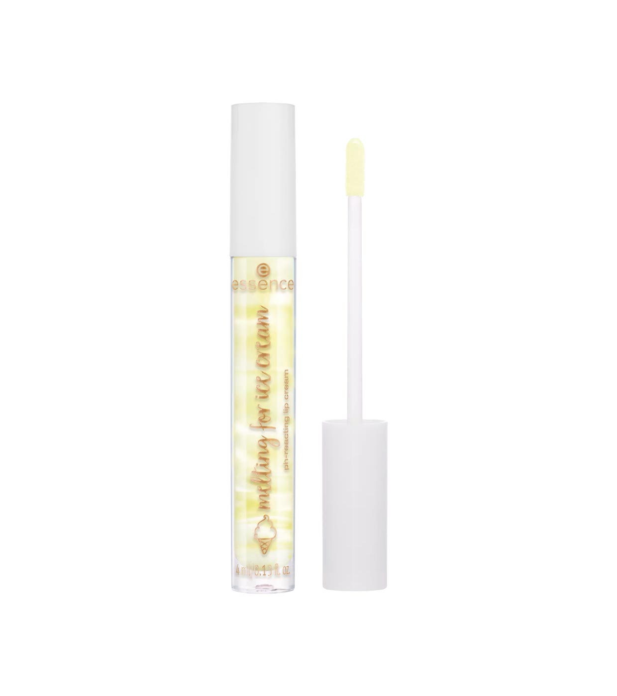El brillo labial Melting For Ice Cream de essence reacciona al pH de la piel de los labios y ofrece un tono sutil y único.
