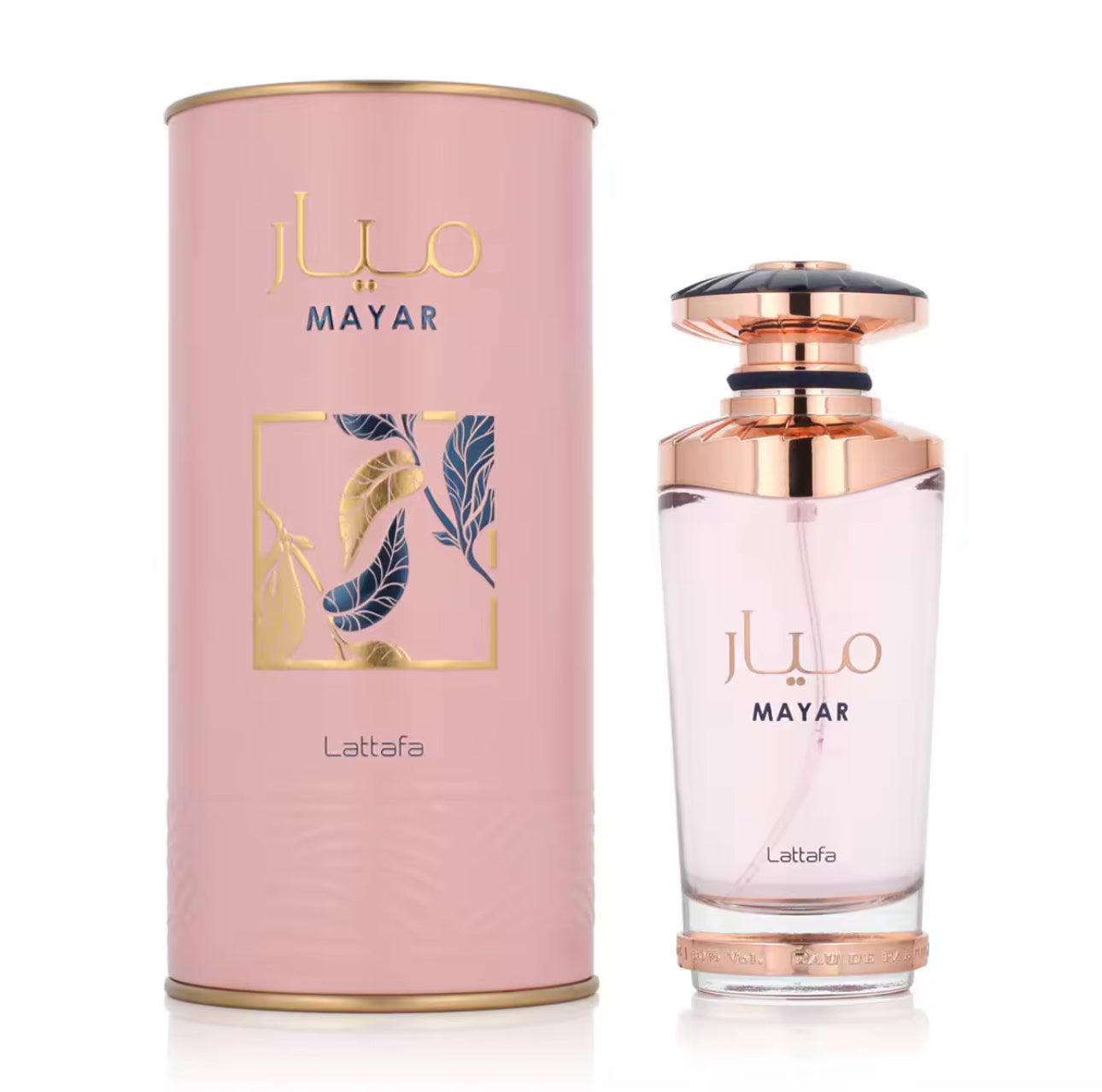 Descubre el exquisito perfume Mayar de Lattafa. Es un aroma femenino. Especialmente creado para ser tu mejor aliado en primavera y verano, destacarás con su explosión de aromas afrutados que te harán sentir fresca y segura todos los días. ¿Preparada para una fragancia irresistible?